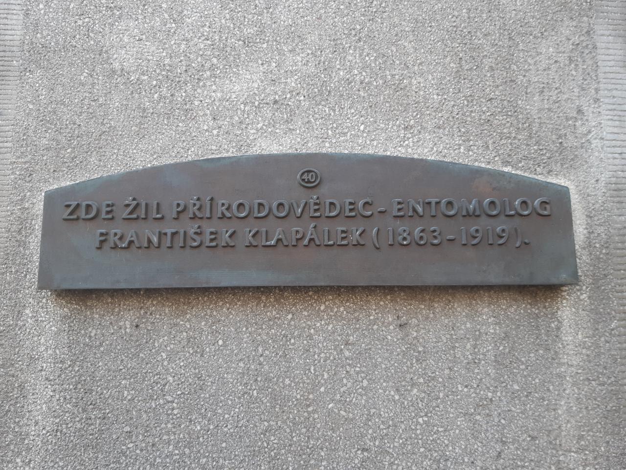 František Klapálek patří mezi nejvýznamnější české entomology. Byl to přední evropský odborník na studium brouků, zabýval se dále síťokřídlými a chrostíky. Vydával odborné i populární publikace o hmyzu a byl prvním překladatelem díla Charlese Darwina do češtiny. Zpočátku pracoval jako středoškolský profesor, později mu jeho věhlas zajistil renomé mezi akademiky. Stal se členem mnoha odborných společností a spoluzakládal Československou entomologickou společnost, které také předsedal. Pamětní deska byla v Litomyšli osazena roku 2000 společně s dalšími pamětními deskami na počest významných občanů Litomyšle.