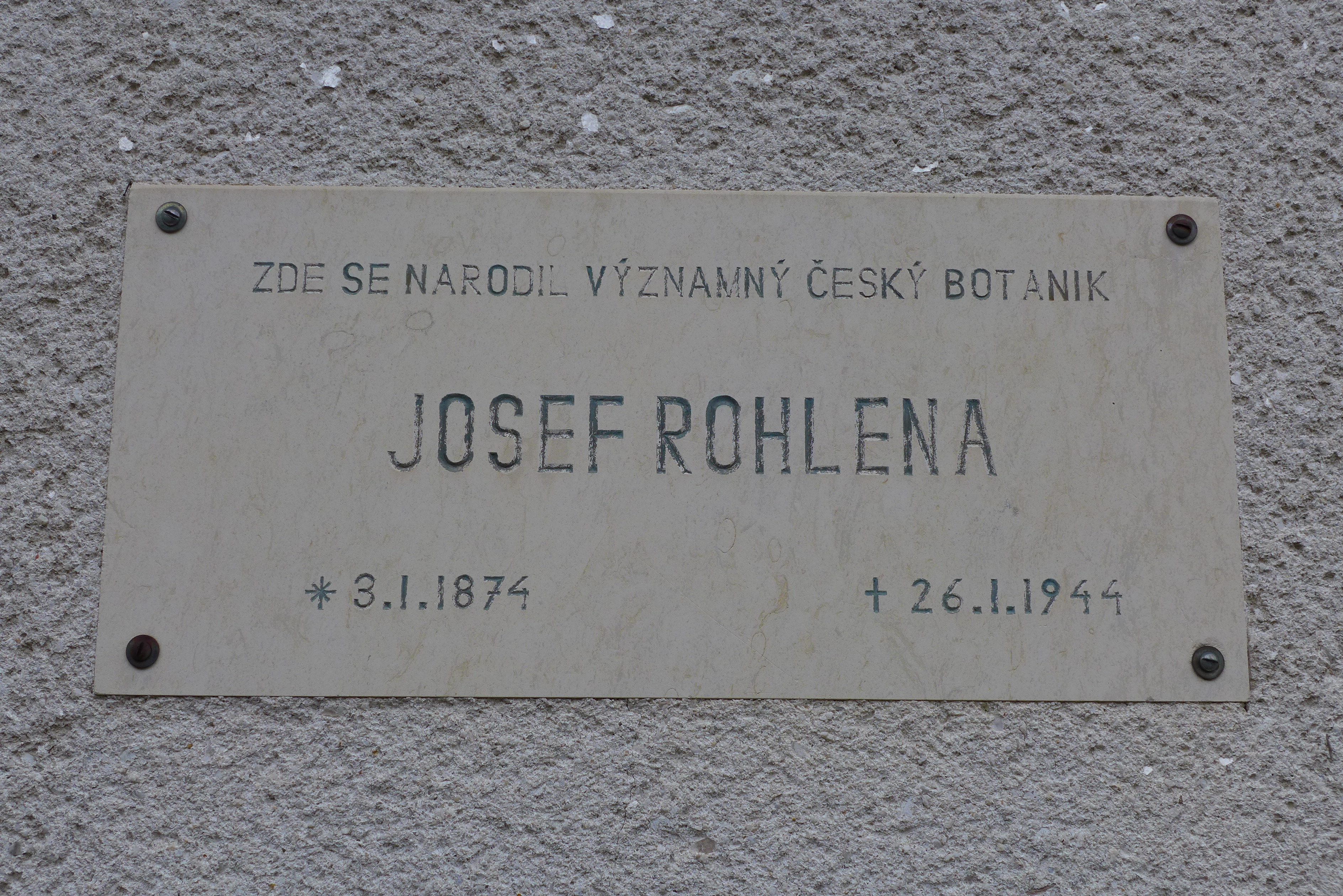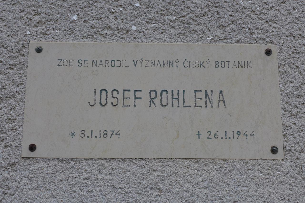 Pamětní deska umístěná na rodném domě botanika Josefa Rohleny (1874-1944) byla vytvořena a instalována Československou botanickou společností v roce 1984, 110 let od jeho narození. Rohlena byl významný přírodovědec, jeden ze zakladatelů botanické společnosti, objevitel několika druhů rostlin i živočichů, hlavně měkkýšů.