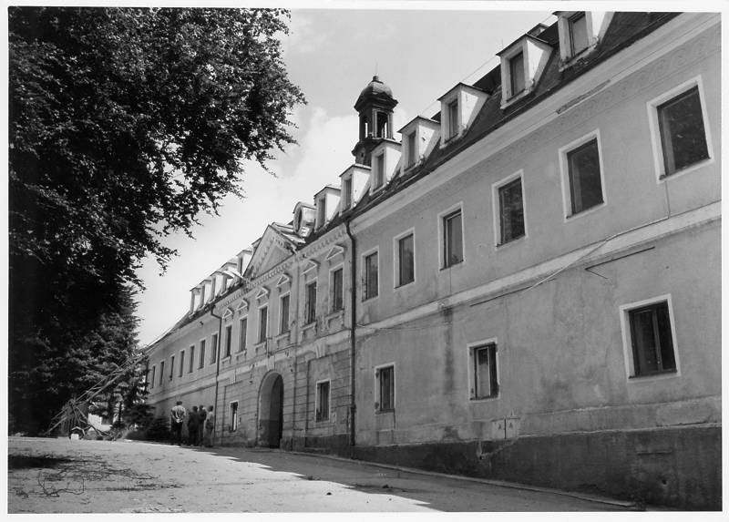 Budovu v klasicistním slohu, nazývanou pro svou monumentálnost a zdobnost též zámek, nechal v Nových Zákupech postavit továrník Josef Leitenberger jako textilní manufakturu a své sídlo. Výroba byla spuštěna v roce 1788, avšak pro rostoucí konkurenci byli potomci zakladatele nuceni ji v roce 1853 prodat a textilka zanikla. Ve druhé polovině 19. století se zde střídaly různé provozy, např. bělidlo, cukrovar, kamenictví, brusírna atd., od 80. let byl areál v majetku císařské rodiny.