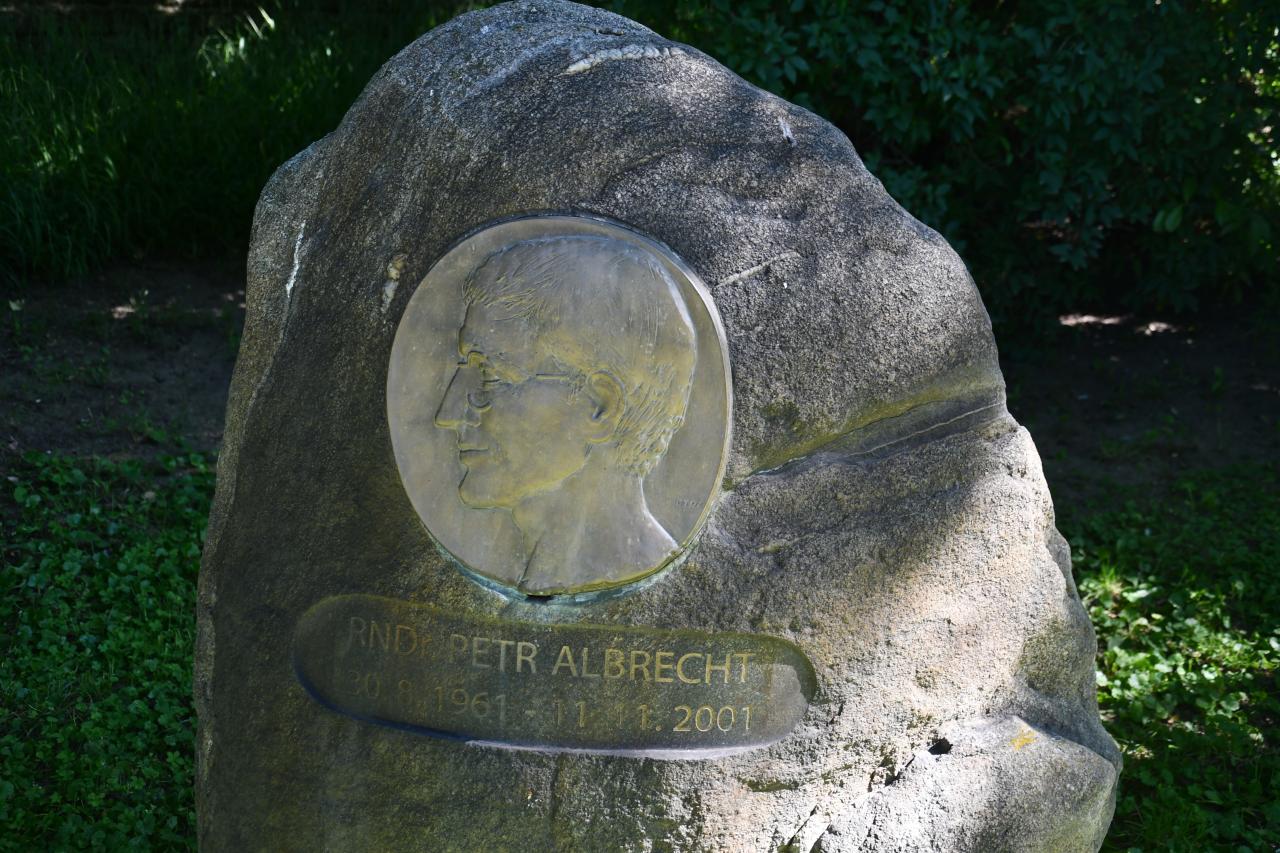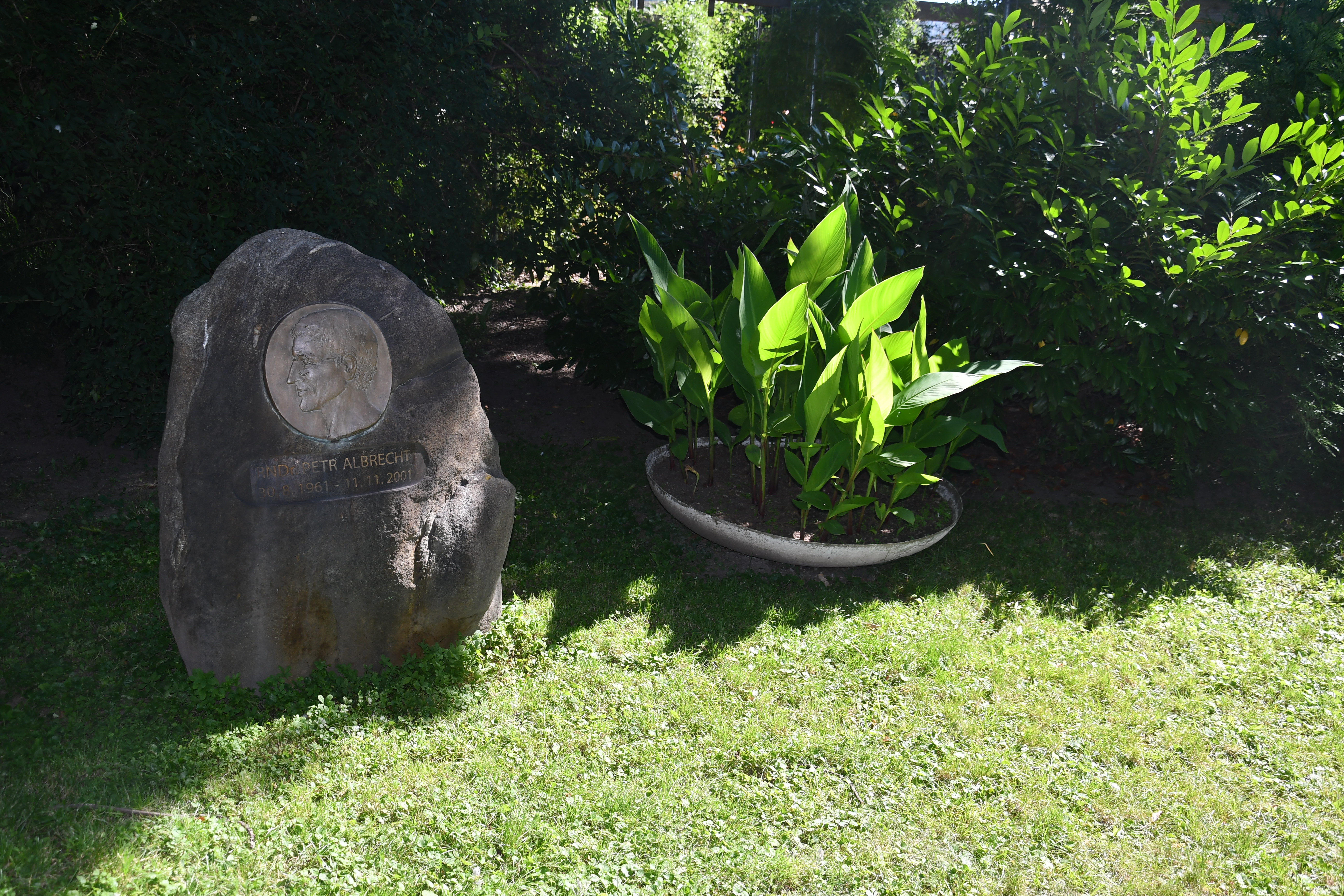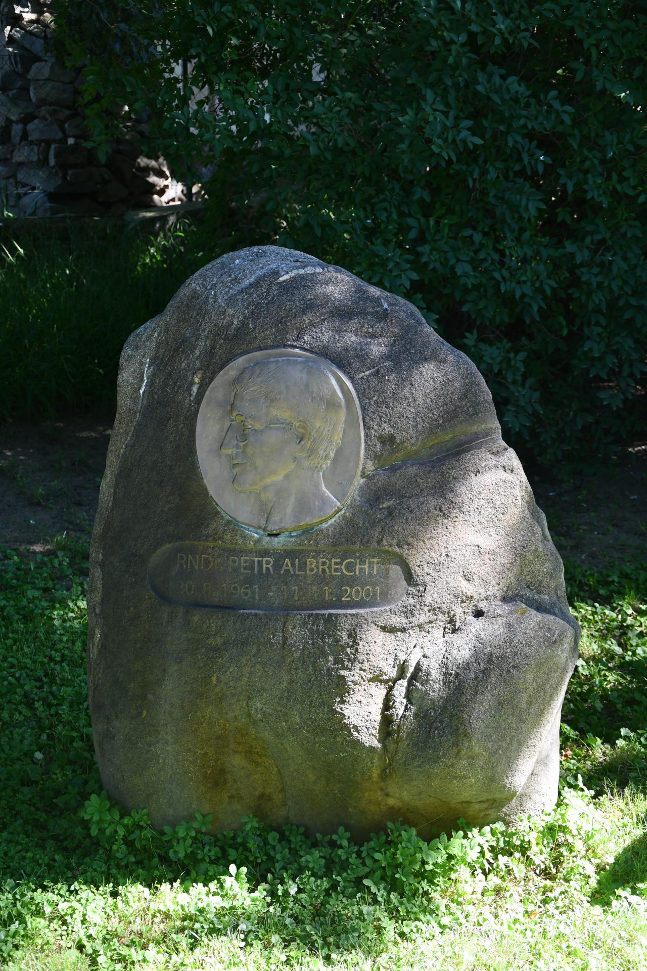 Ve stínu stromů se v prostějovské zahradě nachází památník Petra Albrechta. Jedná se o přírodní balvan, do nějž je vsazena kruhová deska zpodobňující v nízkém reliéfu jeho portrét. Pod deskou je vytesáno „RNDr. Petr Albrecht“ a data jeho narození a úmrtí „30. 8. 1961 – 11. 11. 2001“.