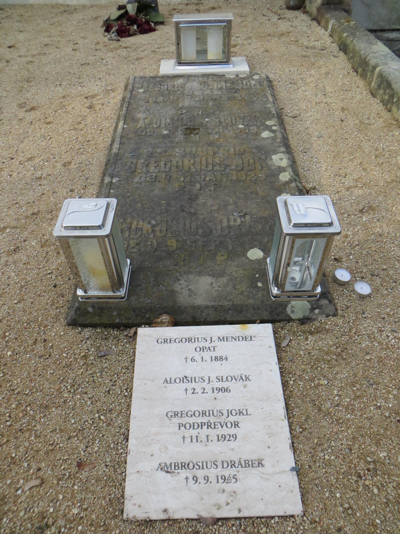 Hrob jednoho z nejvýznamnějších světových vědců Gregora Johanna Mendela (1822–1884), který během svých pokusů s hrachem setým objevil základy dědičnosti, je součástí hrobky řádu augustiniánů na Ústředním hřbitově v Brně. Hrobka augustiniánského opatství byla vybudována kolem roku 1885 dle návrhu Germana Wanderleyho a stavební práci provedla brněnská kamenosochařská firma Johanna Eduarda Tomoly. Jedná se o památkově chráněnou neorenesanční pískovcovou hrobku připomínající svou podobou oltářní nástavec (retabulum).