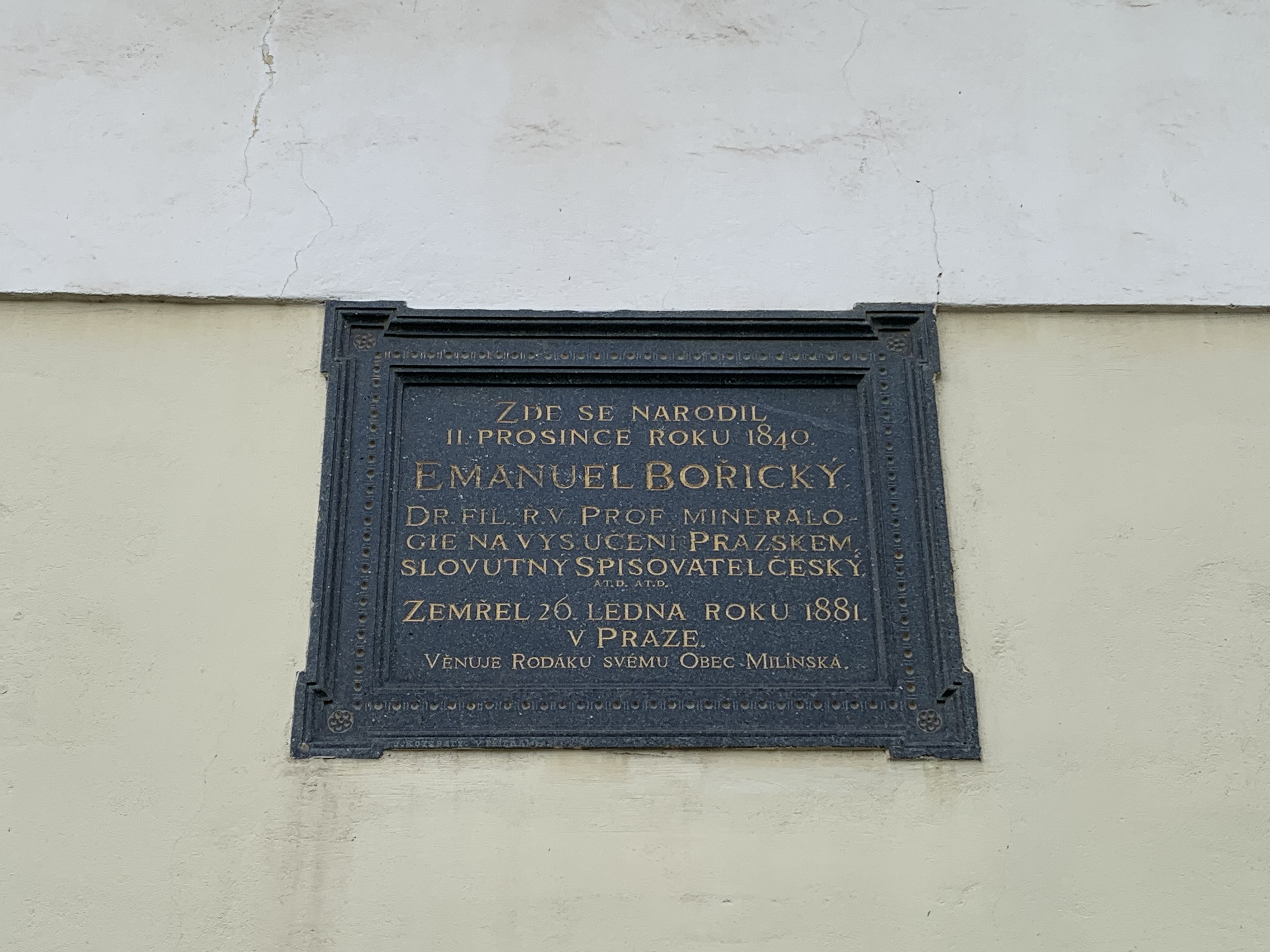 Emanuel Bořický pocházel z učitelské rodiny. Narodil se v obci Milín, vystudoval v Praze a stal se univerzitním profesorem mineralogie. Petrografie – věda o složení hornin, byla v té době v počátcích. Bořický patří mezi její zakladatele. Významně rozvinul analytické a mikrochemické metody zkoumání hornin z výbrusů. Zemřel na následky pádu na ledě při přecházení zamrzlé Vltavy v Praze rok poté, co dosáhl profesury mineralogie na pražské Karlo-Ferdinandově univerzitě. Jeho pohřbu se zúčastnilo na čtyři tisíce lidí. Všechny nekrology lkaly nad předčasným odchodem muže, jenž byl Poctivý syn vlasti, muž přísné vědy a pravý přítel svých žáků (z nekrologu v časopisu Horymír).