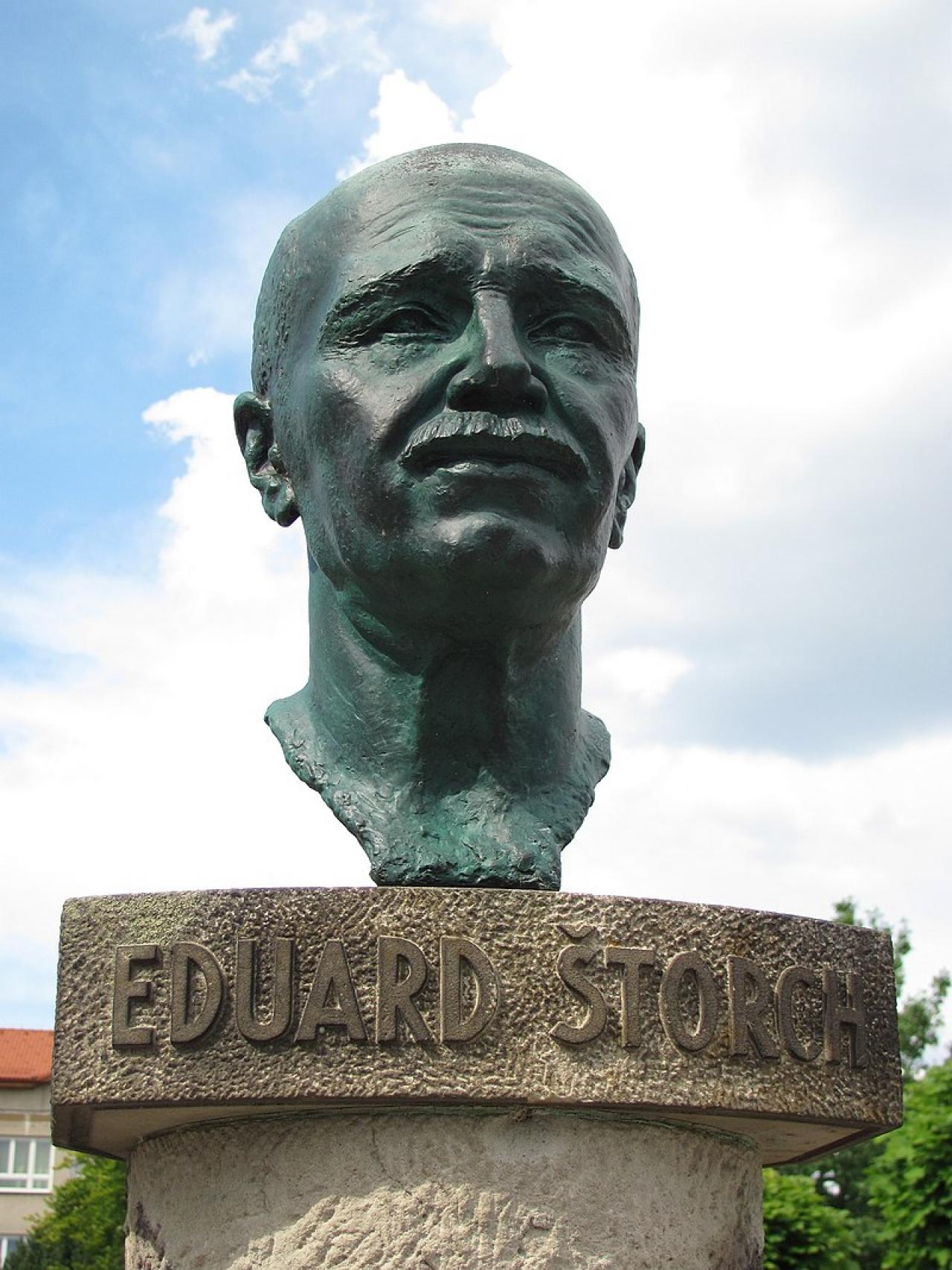 Ostroměřský rodák ─ pedagog, spisovatel a amatérský archeolog Eduard Štorch (1878–1956), má bustu v parčíku mezi školou nesoucí jeho jméno a muzeem věnovaným jemu a dalšímu ostroměřskému rodákovi, Karlu Zemanovi, jenž je rovněž spojen se ztvárněním pravěku. Bustu vytvořil hořický sochař Josef Bílek (1896–1978) ke stému výročí Štorchova narození v roce 1978. Busta byla zcizena v roce 2011 a na původním podstavci je nyní instalována její replika.