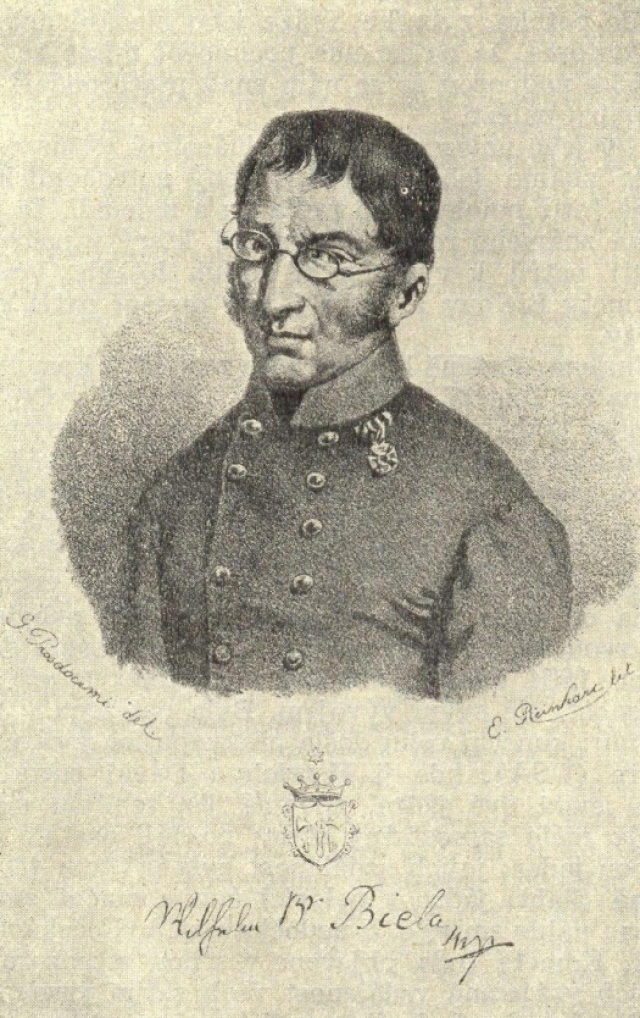 Wilhelm von Biela se narodil roku 1782 v německém městě Rossla do šlechtické rodiny českých exulantů pánů z Bílé, kteří museli opustit Čechy po bitvě na Bílé hoře. Zvolil si vojenskou dráhu a studoval na vojenské škole v Drážďanech, po které nastoupil do rakouské armády. Vojákem se stal v době napoleonských válek a prošel si několika bitvami, včetně bitvy u Lipska, ve které byl raněn. Po roce 1815 se na čas usadil v Praze a začal se věnovat astronomii. V rámci své vojenské služby také strávil nějaký čas jako součást posádky v pevnosti v Josefově, kde na ochozech bastionů pozoroval hvězdy a další vesmírná tělesa. Roku 1826 zde objevil neznámé těleso, z jehož dráhy vypočítal, že se jedná o periodickou kometu s periodou 6,75 let. Tato kometa, na jeho počest nazvaná 3D/Biela, sice byla již dříve pozorována francouzskými astronomy Montaigneme a Ponsem, ti však nebyli schopni určit její pohyb a prvenství bylo připsáno von Bielovi. Pamětní deska byla umístěna při příležitosti Valného shromáždění Mezinárodní astronomické unie v roce 2006. Deska se nachází na Bastionu I i přesto, že von Biela svůj objev učinil zřejmě na ochozu půlbastionu XXXVII. Na von Bielovu počest byl také pojmenován jeden z kráterů Měsíce.
