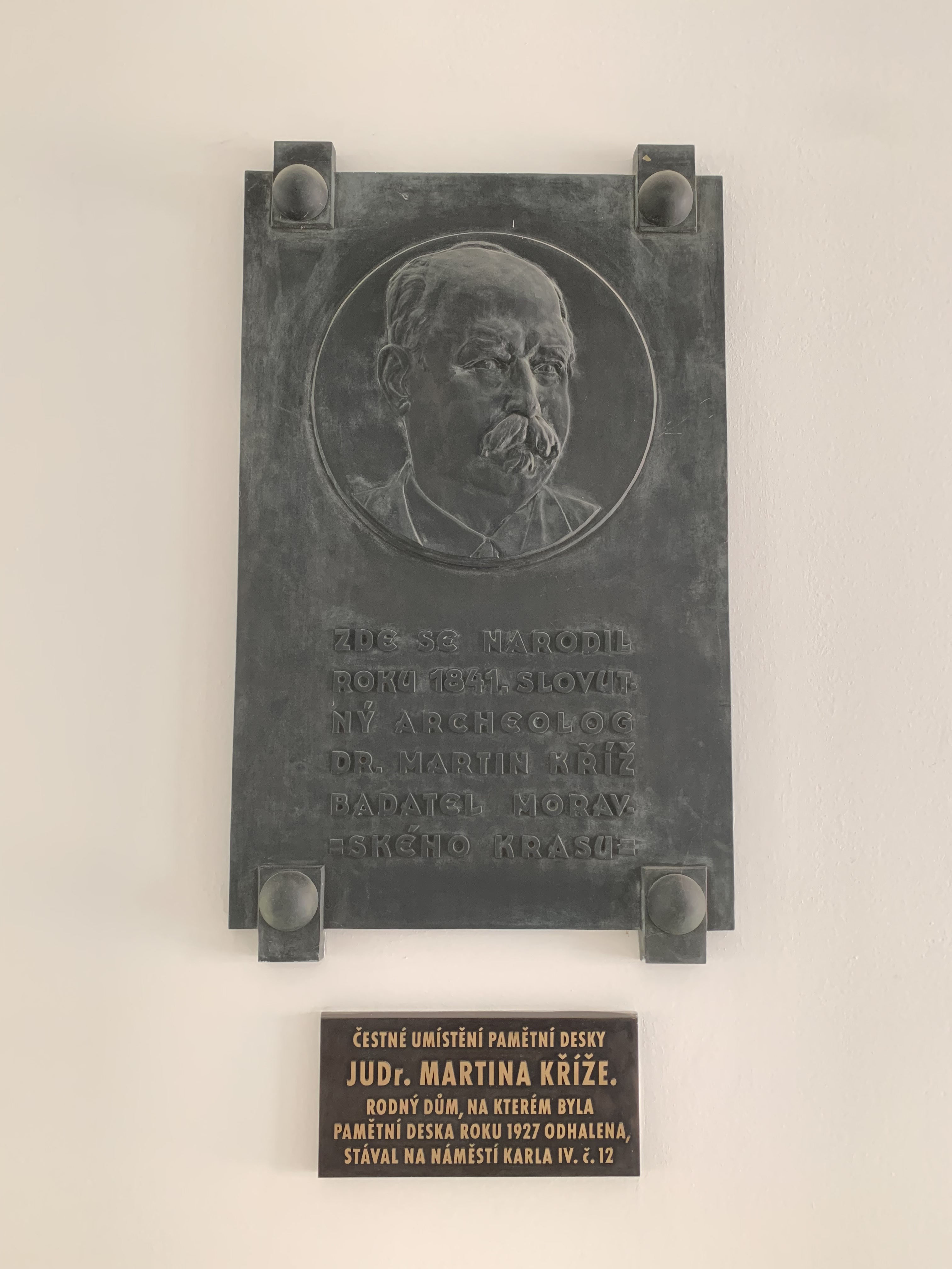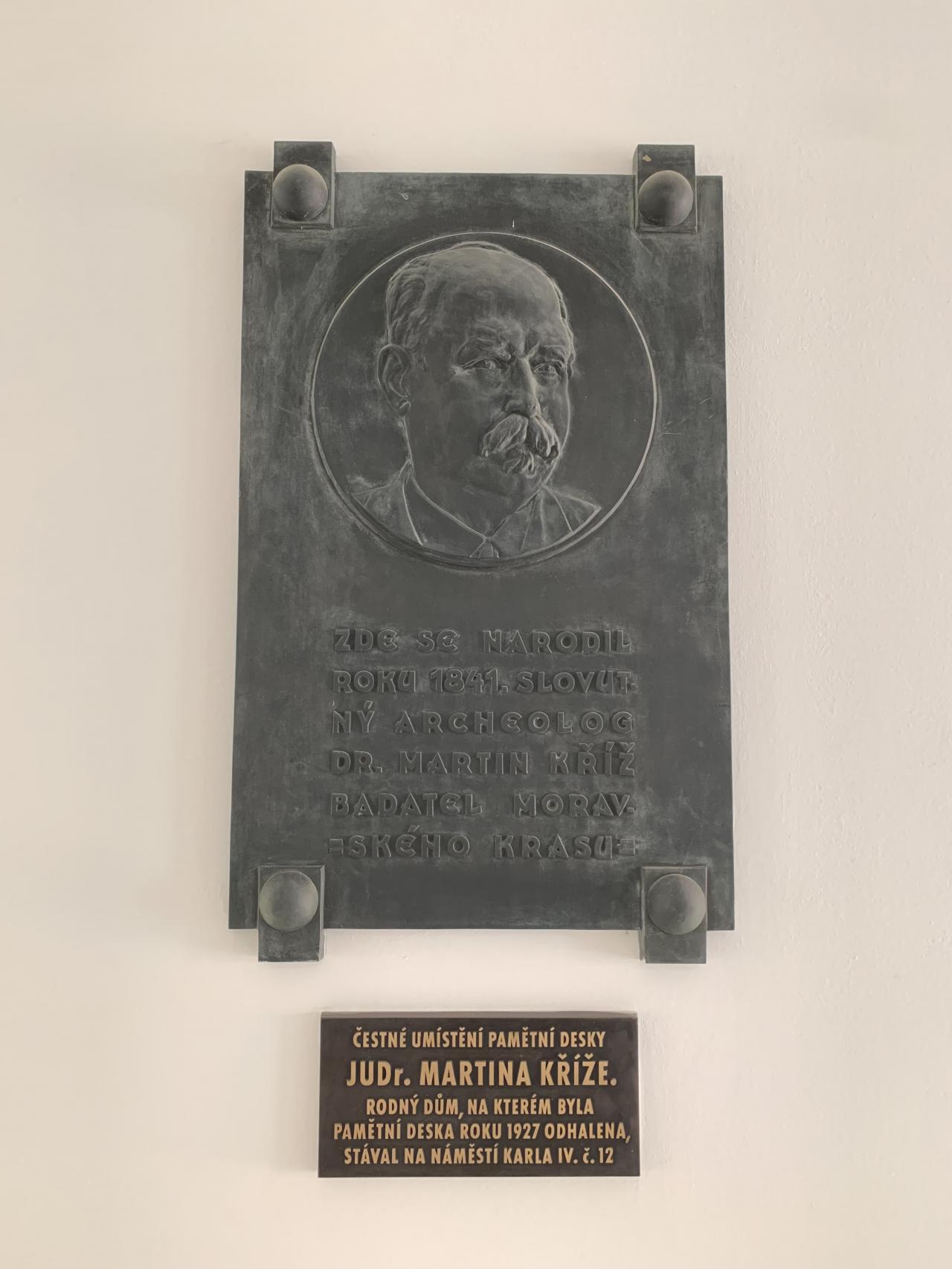 Pamětní deska Martina Kříže se nacházela od roku 1927 na jeho rodném domě v Brně-Líšni, v roce 2008 však byla přemístěna v rámci téže městské části do vstupní haly kulturního centra Dělňák, které se nachází v ulici Martina Kříže.