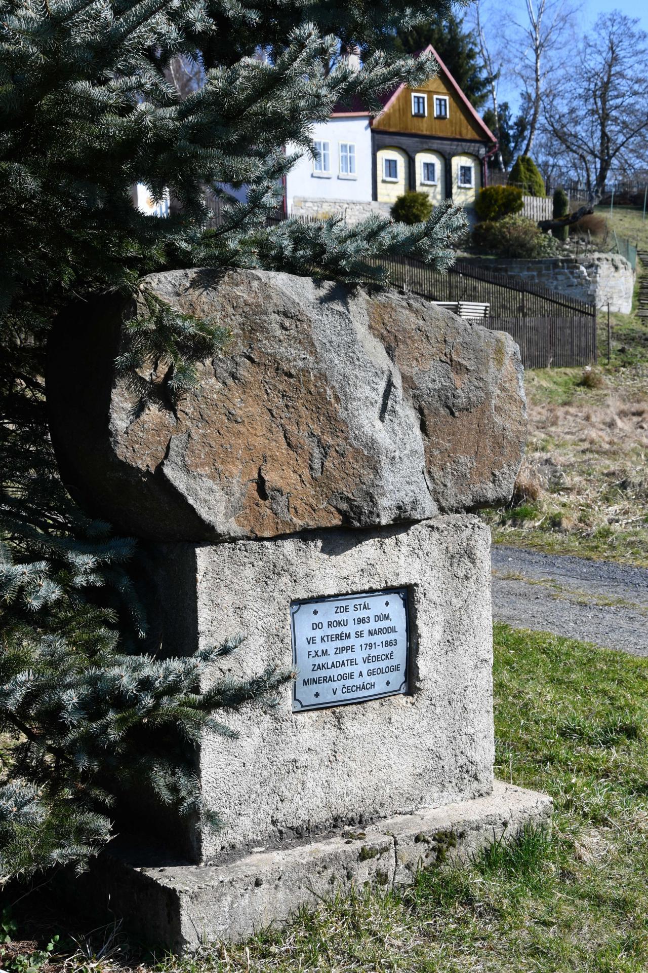 It wasn’t until 1995 that a memorial was built on the site of Zippe’s birthplace, at the initiative of Emil Sedláček, then the village mayor, and the artist Jiří Wagner. The memorial consists of a three-and-a-half-ton block of syenite from the Rožany quarry, featuring a commemorative plaque.