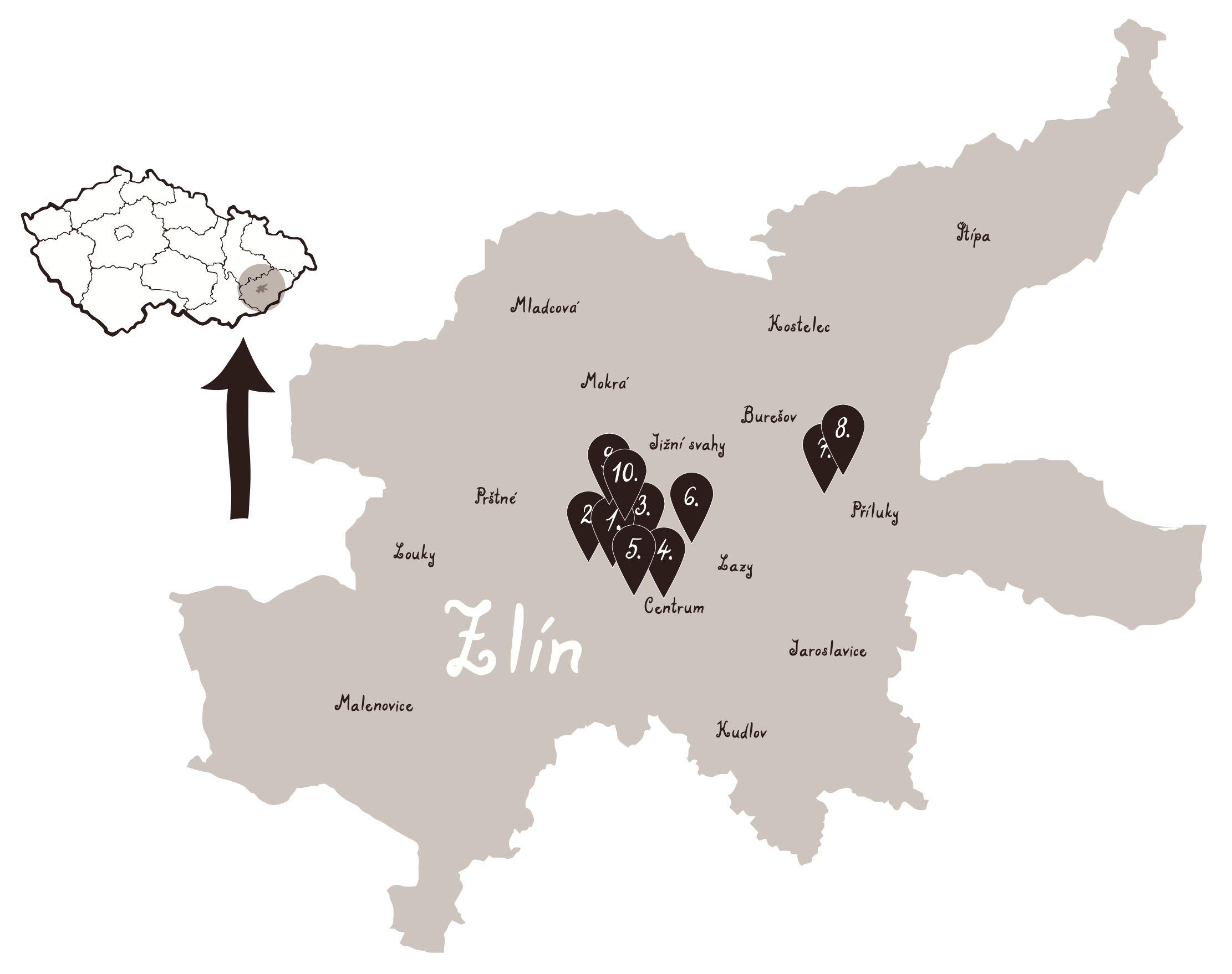 7. Nemocnice v zahradách – Krajská nemocnice Zlín: 49.2280933, 17.6950100 zobrazit v Živé mapě | zobrazit na Mapy.cz | zvuková stopa k přehrání