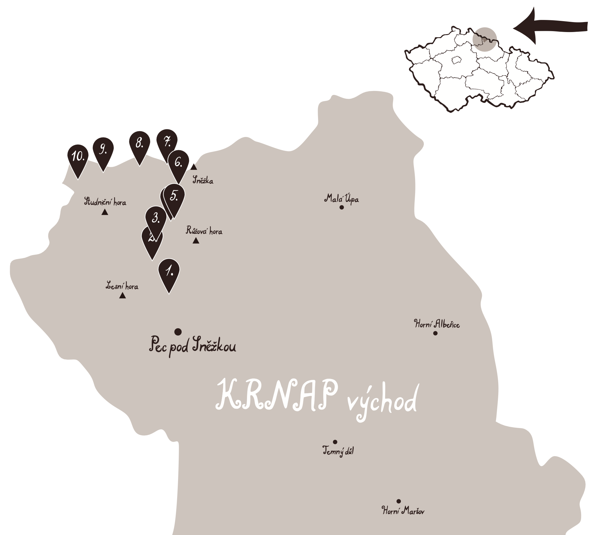 Krkonoše jsou naším nejvyšším pohořím. S výškovým rozpětím se mění i klimatické podmínky, které zapříčiňují obrovskou rozmanitost místní květeny. Proto Krkonoše vždy přitahovaly sběrače, botaniky a vůbec všechny milce rostlin. Stezka nás provede Obřím dolem – nejhlubším údolím v České republice, který je jakýmsi mikrokosmem krkonošské flóry – vystoupáme od údolních smrčin až k vysokohorské tundře a cestou se seznámíme s osobnostmi z historie botanického bádání, které s tímto pohořím nedílně spojily své jméno. Časová náročnost stezky je přibližně 3 hodiny (není však započítána zpáteční cesta, která nabízí více možností).